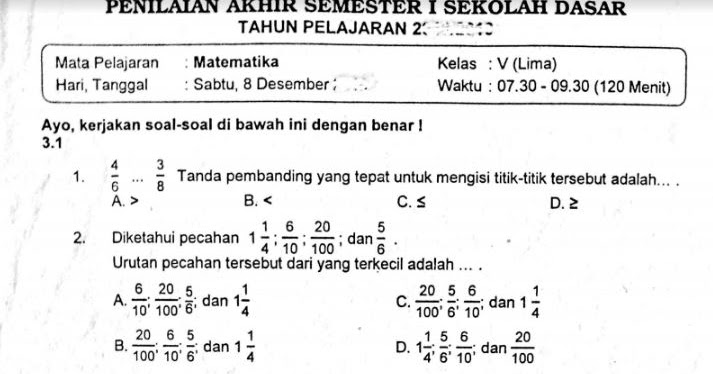 Download Soal Dan Kunci Jawaban Pas Uas Sd Mi Kelas 5 V Semester 1 Kurikulum 2013 Guru Jumi
